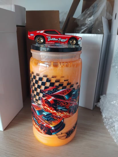 Hot wheels potion tumbler with glow in the dark decorative lid